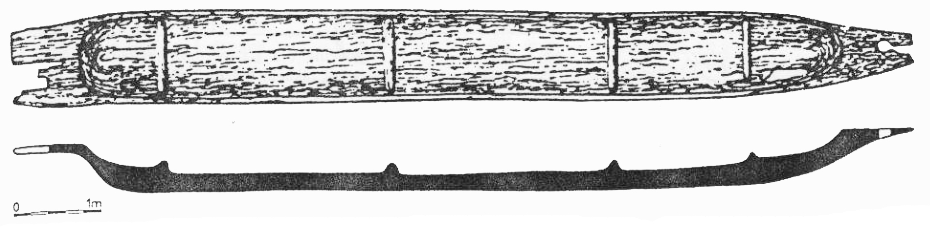 Monoxyl nalezený u Mohelnice v řece Moravě - člun vydlabaný z jednoho kusu kmene (dub) vyztužený čtyřmi žebry, který je datován do roku 281 př. n. l.